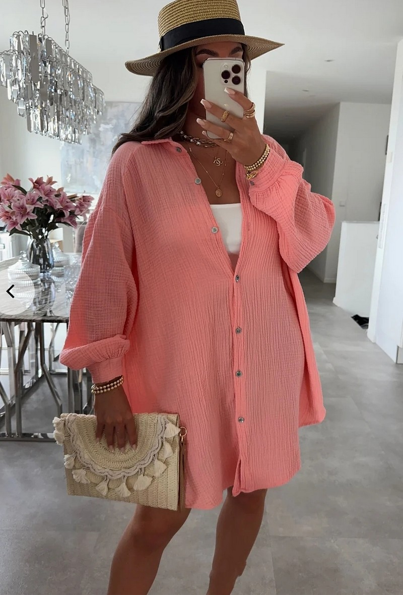 Chemise femme gaze de coton OEIL Corail Chemise femme gaze de coton OEIL Corail